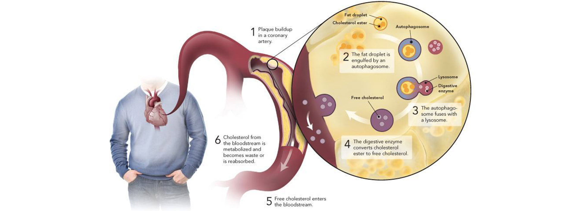 The Heart Institute research showed that autophagy could engulf and digest cholesterol accumulated in artery walls. “This process facilitates the removal of cholesterol and may provide an entirely new target to reverse atherosclerosis, the main cause of heart attack and stroke,” said Dr. Marcel.